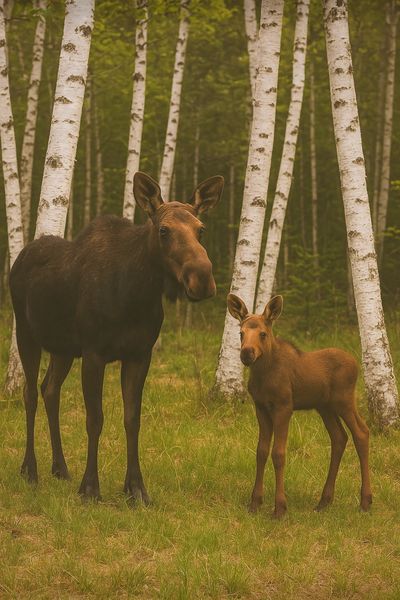 The great beast bellowed, then moaned and grunted. Lee sensed movement near the side of the road and, in her periphery, could make out the shape of a smaller moose, a calf. Before going to her baby, Moosh took two hesitant, lumbering steps toward Lee, lowered her head to the window, and grunted softly. The grunt sounded like a purr to Lee who reached out and touched Moosh.